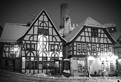 Der heutige Weinladen Eppsteiner Weinpresse befindet sich an einer historischen Stelle: Das 1902 von Carl Wilhelm Plöcker als Rathaus errichtete Gebäude ist optisch stark an die ihm überragende Burganlage angelehnt, samt einem wie ein Bergfried gestalteten Turm sowie Burgzinnen auf dem Dach. Diese sind auf einer Postkarte historisch belegt, waren jedoch im Laufe des vergangenen Jahrhunderts unter einem Vordach verschwunden. Erst seit der Sanierung 2015 ist das Gebäude wieder in seiner ursprünglichen Form zu sehen. Zumal auch historischer Putz für die Fassade gewählt worden, der Anstrich nach dem Farbgutachten eines Restaurateurs erfolgt und der Schiefer in altdeutscher Deckung auf das Dach gebracht worden ist.